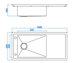 型號(hào):5466款式:單瀝水板單盆總尺寸:1000*500*205 mm大盆:525*400*180mm